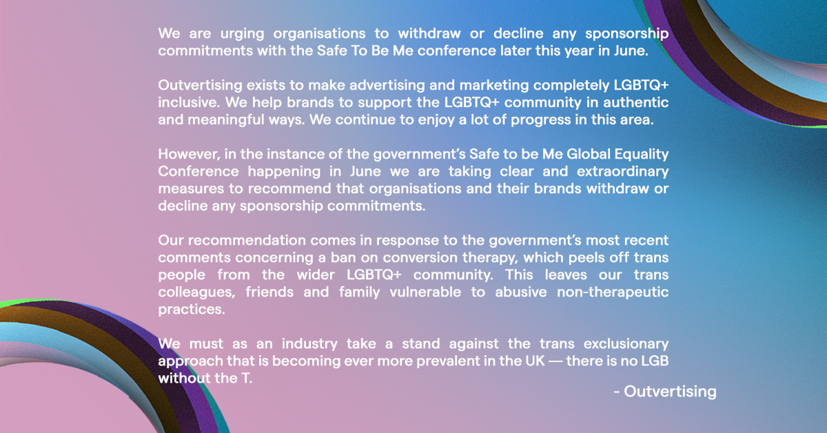 Our statement recommending brands not sponsor the Safe To Be Me conference in June 1 Apr Written By Neil McKenney Neil McKenney