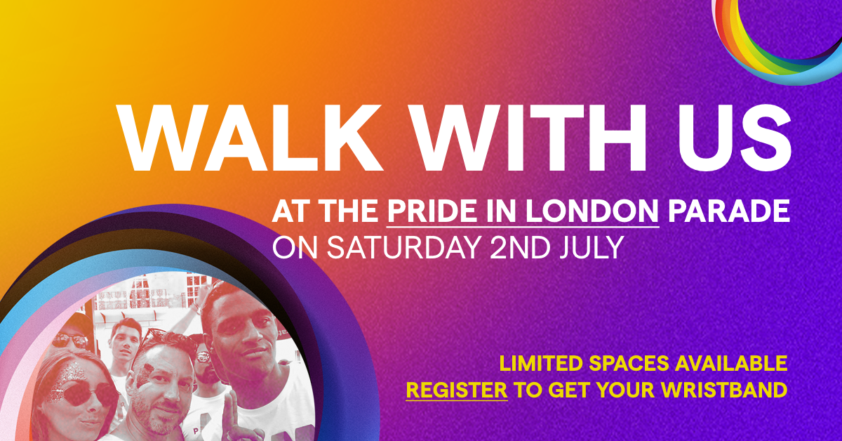 We are really excited to join Pride in London this summer. This is a great opportunity for us to get together to celebrate who we are and stand up for the LGBTQ+ community.